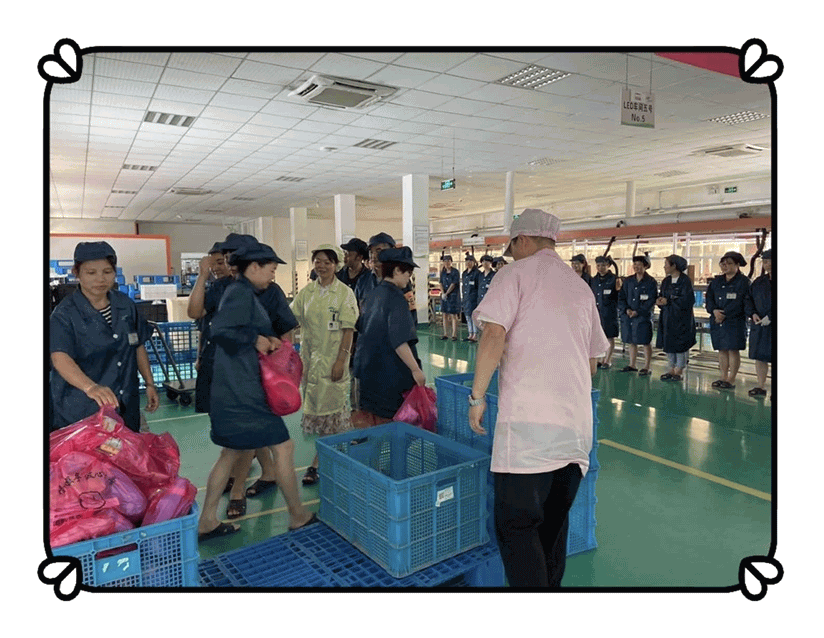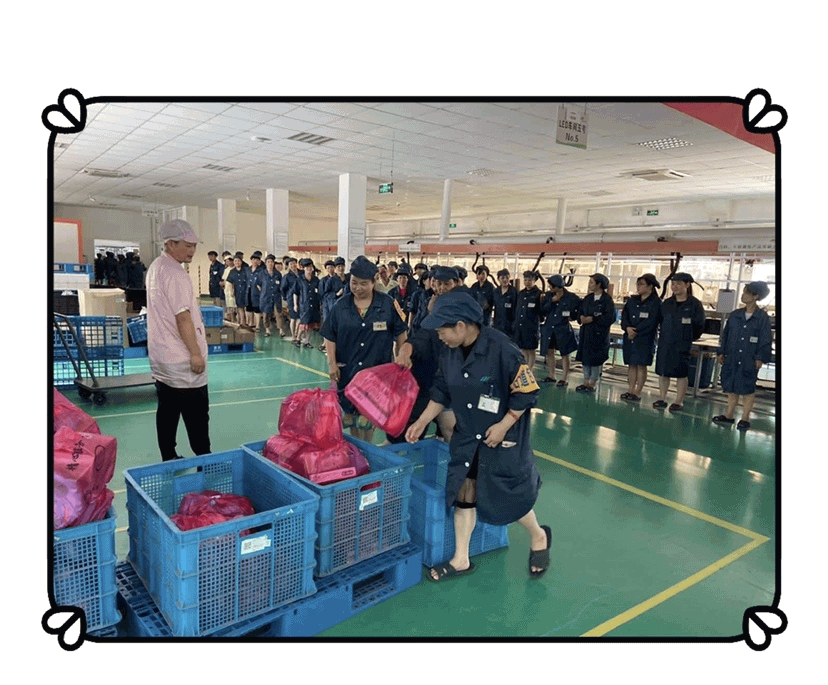 各个车间的员工井然有序的领取礼品,浙江豪庭灯饰越做越好,离不开这些车间员工的努力,离不开公司每个人的努力。