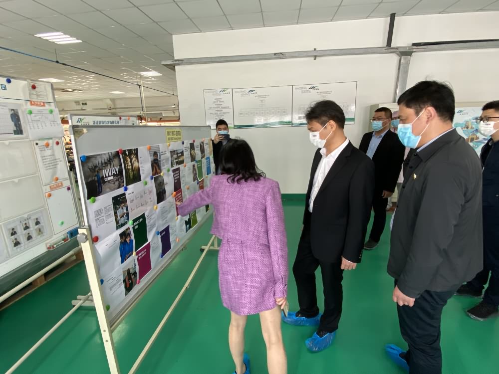 2022年3月15日,桐乡市委副书记、市长王坚莅临我司调研,凤鸣街道党委书记吴志强等相关领导陪同出席。公司总经理胡婷婷热情接待并陪同走访车间现场。