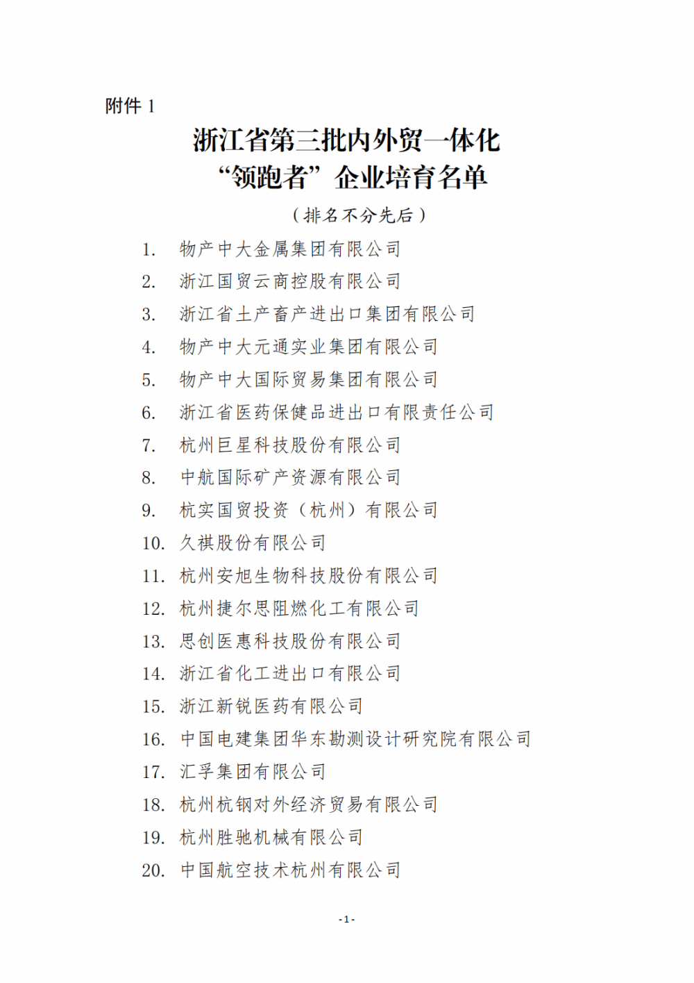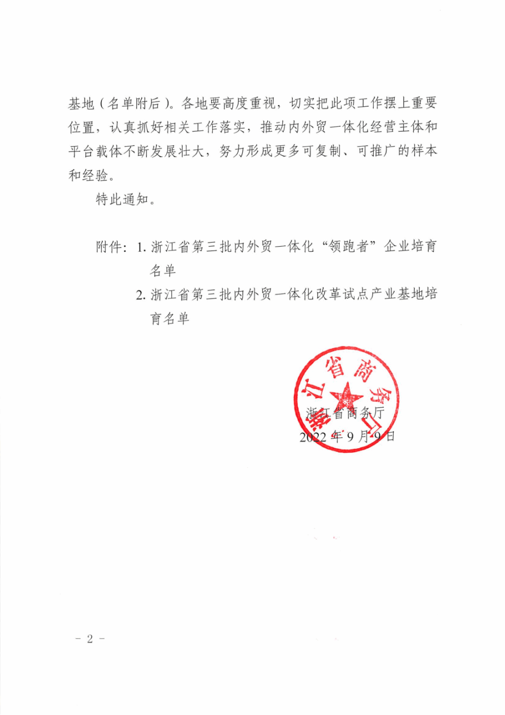 我司被评为浙江省内外贸一体化“领跑者”企业