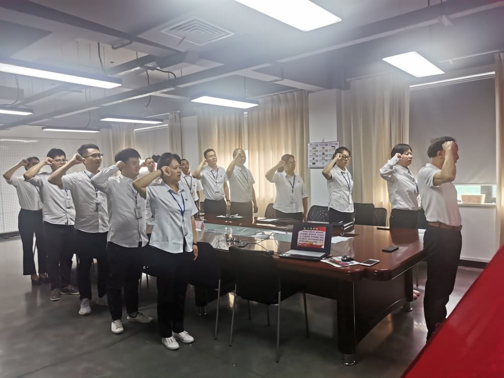 3、为激励全体党员牢记党的光辉历史,牢记自己的使命和责任,激励全体党员坚定爱党、信党、跟党走的理想信念,豪庭灯饰党支部组织全体党员开展重温入党誓词活动,在党支部书记胡晓明的带领下,重温入党誓词,话语铿锵有力,句句饱满,句句有力,重温自己对党忠诚的誓言,也表达为党的事业奋斗终身的决心。